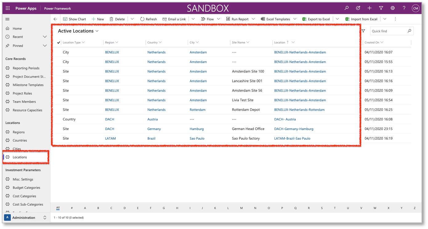 - For each City you defined in the Countries section, you should now create a Location record of type City if you would like a city to be attached to a Project (without going down to the level of a specific site within the city)